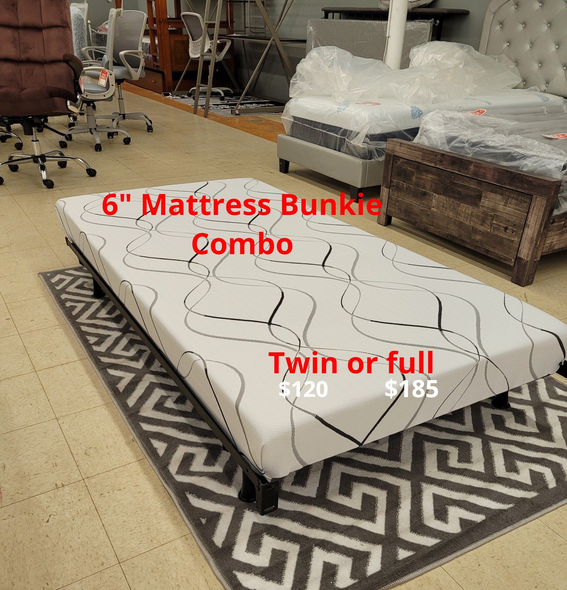 Queen size frame $245. Mattress and boxspring on the bed $639